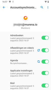 Bij de accounts kun je daarna zien dat jouw Murena.io account is toegevoegd. Dit betekent dat, op jouw telefoon, de Murena.io mail, contacten, agenda en meer zijn ingesteld en worden gesynchroniseerd.